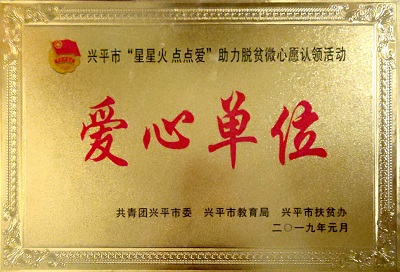 2019年1月,在兴平市“星星火,点点爱”助力脱贫微心愿认领活动中,开云英超官网_开云online(中国)漆被共青团兴平市委、兴平市教育局、兴平市扶贫办评为“爱心单位”
