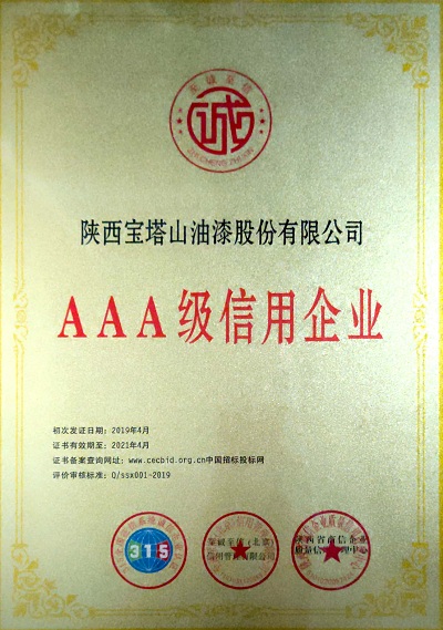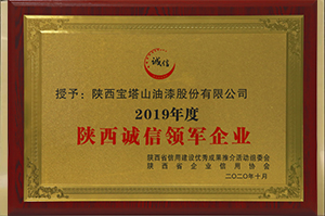 2020年10月,开云英超官网_开云online(中国)漆获评陕西省诚信领军企业