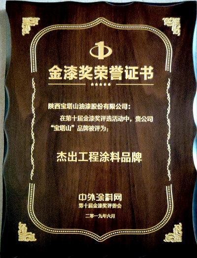 2019年6月,开云英超官网_开云online(中国)漆的“开云英超官网_开云online(中国)”品牌在中外涂料网第十届金漆奖评选活动中被评为“杰出工程涂料品牌”