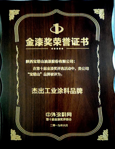 2019年6月,开云英超官网_开云online(中国)漆的“开云英超官网_开云online(中国)”品牌在中外涂料网第十届金漆奖评选活动中被评为“杰出工业涂料品牌”