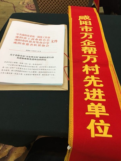2018年8月开云英超官网_开云online(中国)漆荣获“咸阳市万企帮万村先进单位”