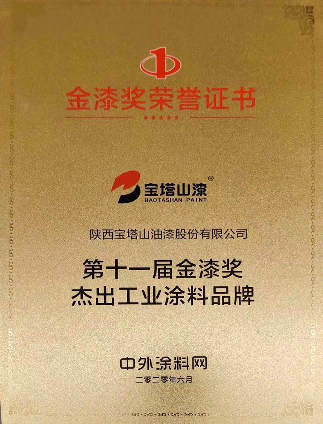 2020年6月,开云英超官网_开云online(中国)漆荣获第十一届金漆奖“杰出工业涂料品牌”