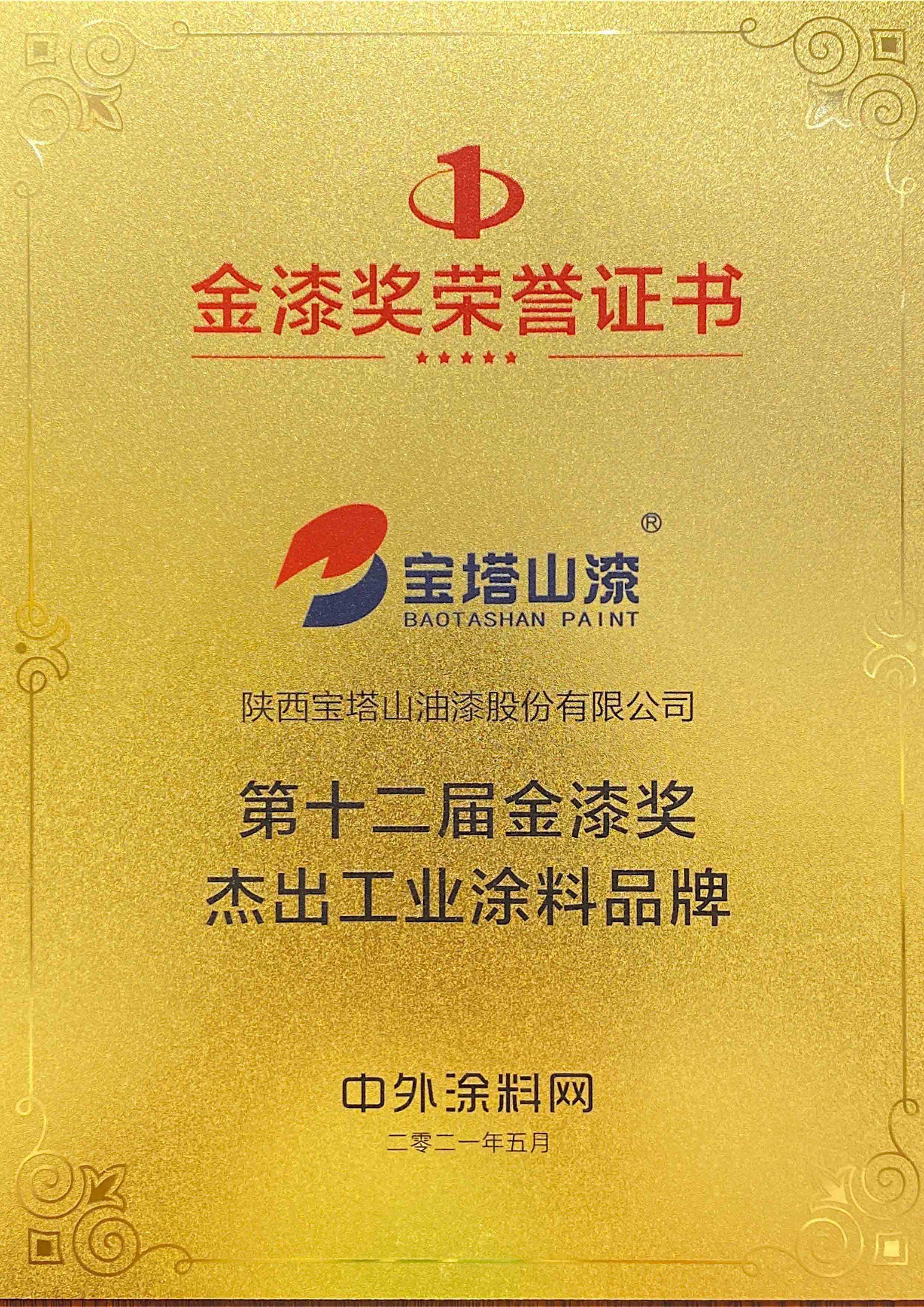 2022年6月,开云英超官网_开云online(中国)漆荣获第十三届金漆奖“杰出工业涂料品牌”。