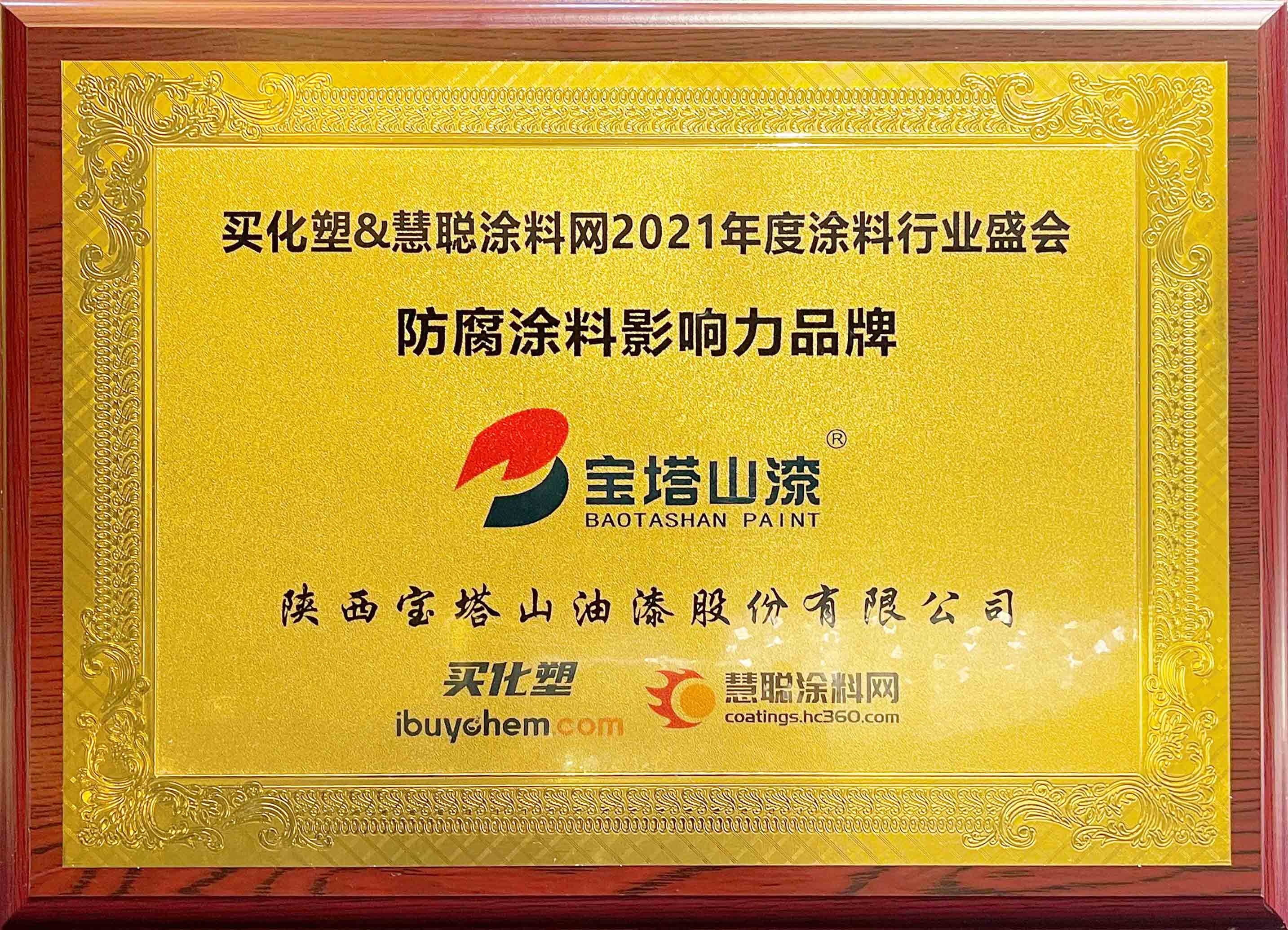 2021年6月26日,开云英超官网_开云online(中国)漆荣获2021 年度“防腐涂料影响力品牌”