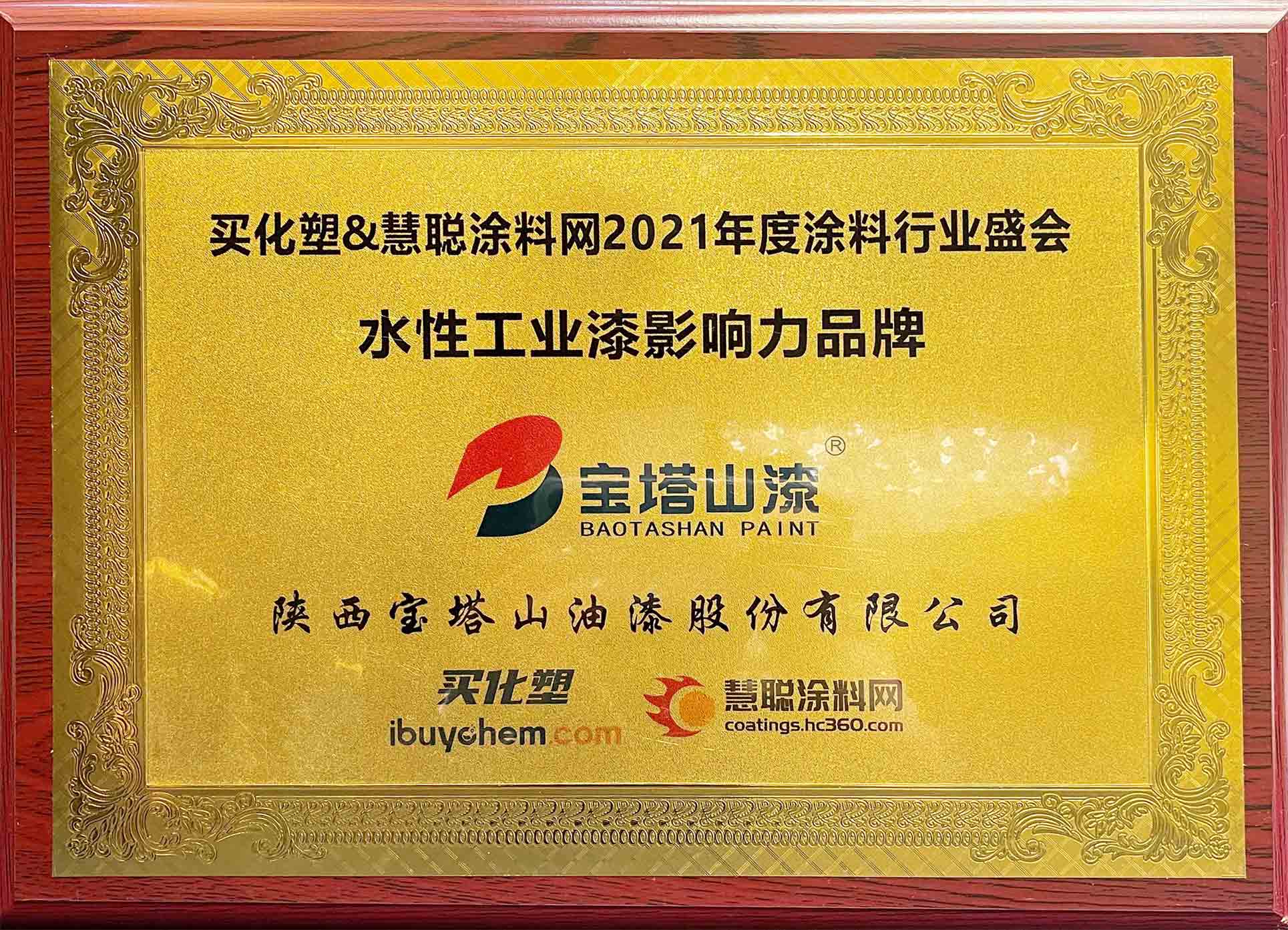 2021年6月26日,开云英超官网_开云online(中国)漆荣获2021 年度“水性工业漆影响力品牌 ”