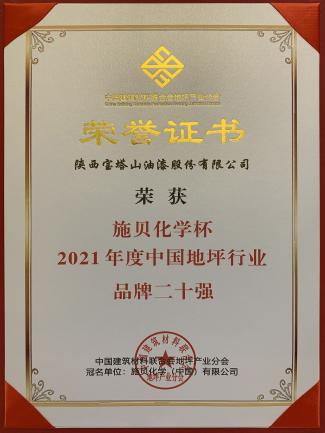 2022年3月,开云英超官网_开云online(中国)漆荣获“施贝化学杯2021年度中国地坪行业品牌二十强”。