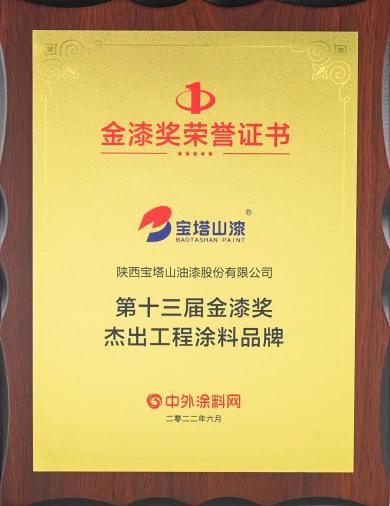 2022年6月,开云英超官网_开云online(中国)漆荣获第十三届金漆奖“杰出工程涂料品牌”。