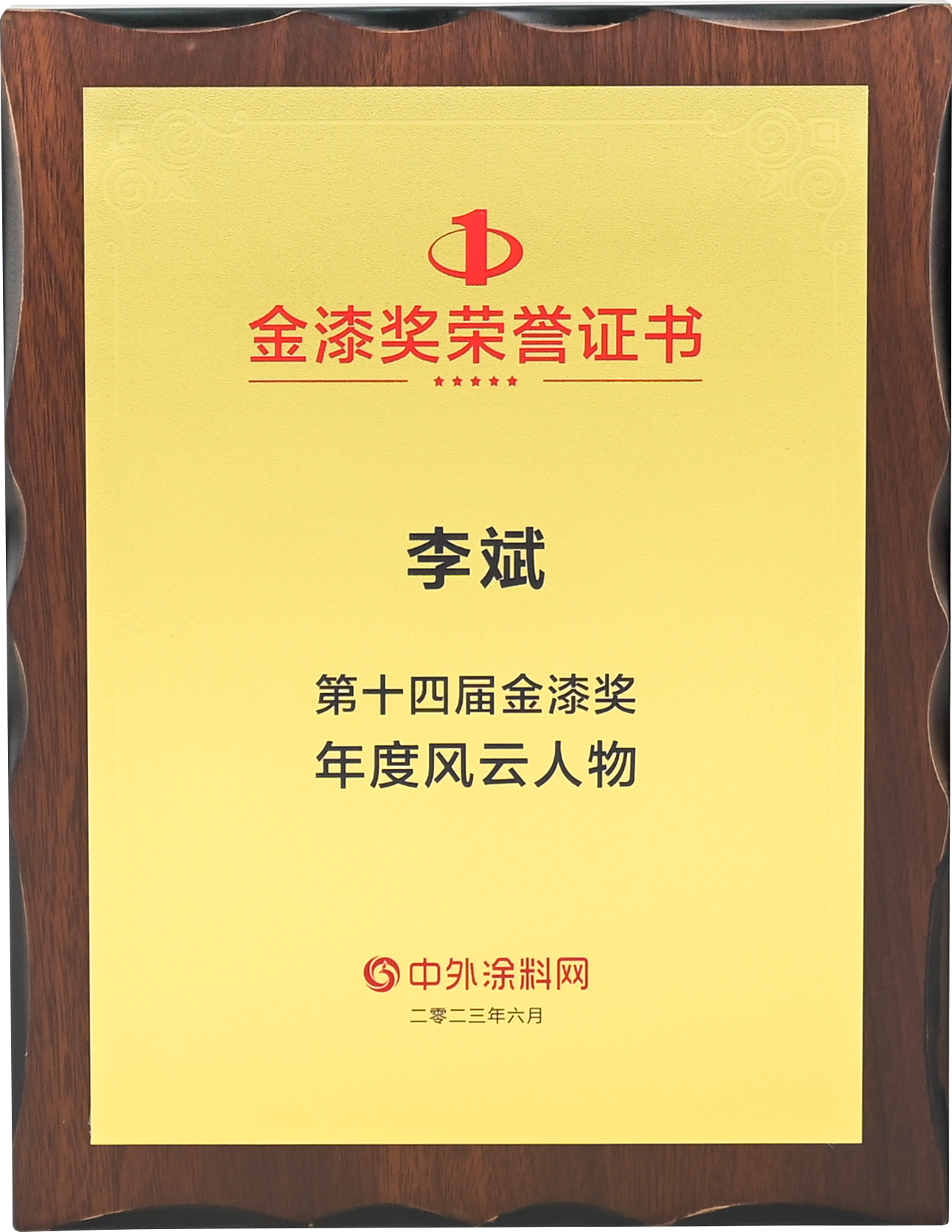 2023年6月,开云英超官网_开云online(中国)漆李斌同志在中外涂料网第十四届金漆奖评选活动中被评为“年度风云人物”。