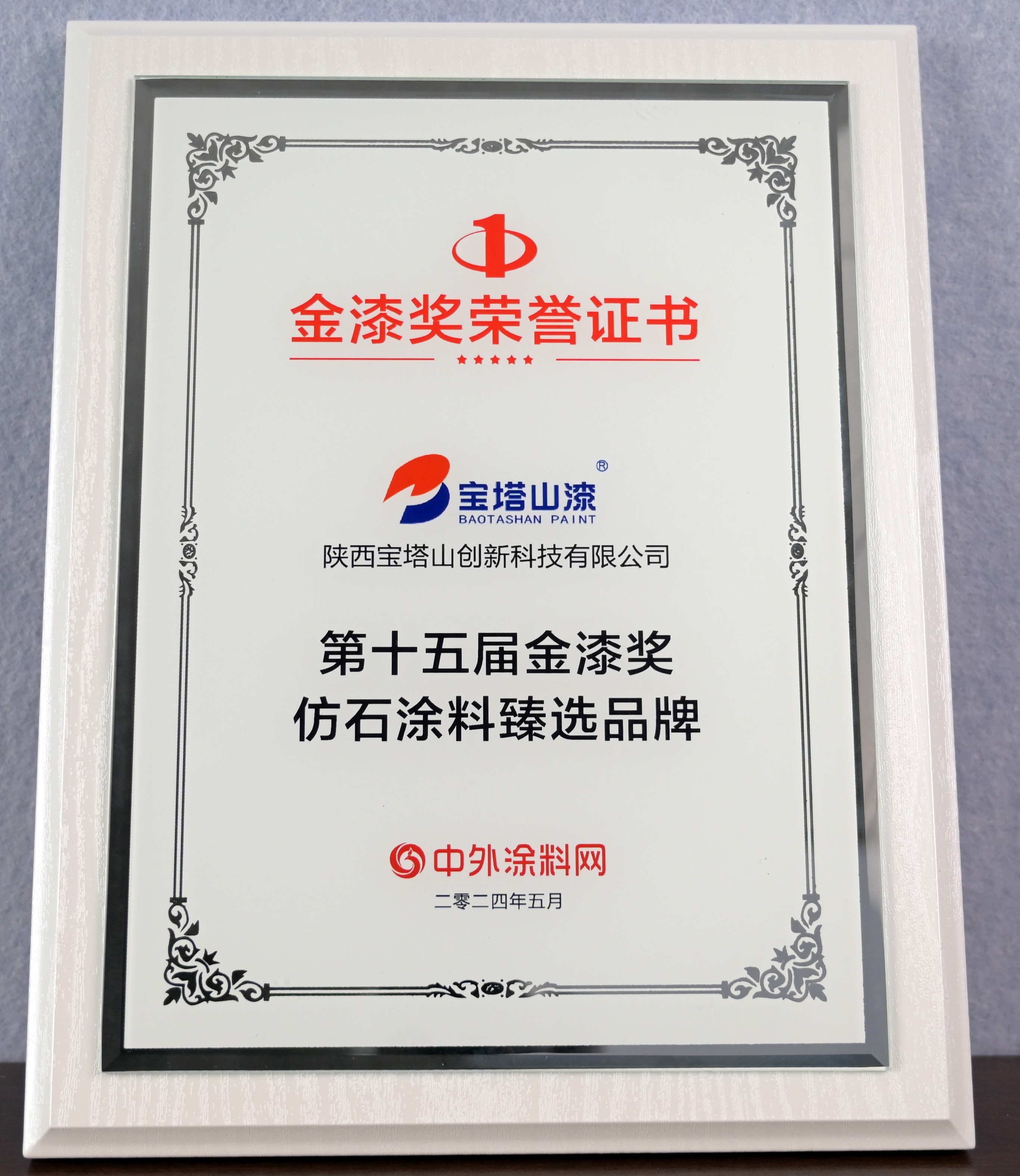2024年5月,开云英超官网_开云online(中国)漆荣获“第十五届金漆奖仿石涂料臻选品牌”。